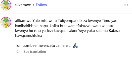 Kamwe ameandika kuwa usiku huo huo, baada ya tukio la jezi kuvuja, watu watatu walishafukuzwa kwenye suala hilo, huku akisisitiza kwamba “mpandikizi” wao hajaguswa wala hajashtukiwa na bado yuko salama kabisa. Katika mtindo wa kejeli, Kamwe amewataka mashabiki na wafuasi wa Yanga kumuombea “mpandikizi” huyo kwa kuwa bado anahitajika kwa kazi zaidi.