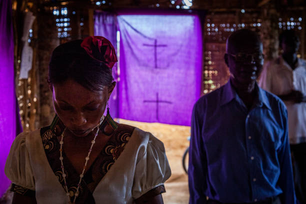 Mwanamke mmoja aliyevalia nguo ya kijani, uso wake umejaa wasiwasi, alisogea mbele. Akapaza sauti mbele ya madhabahu: