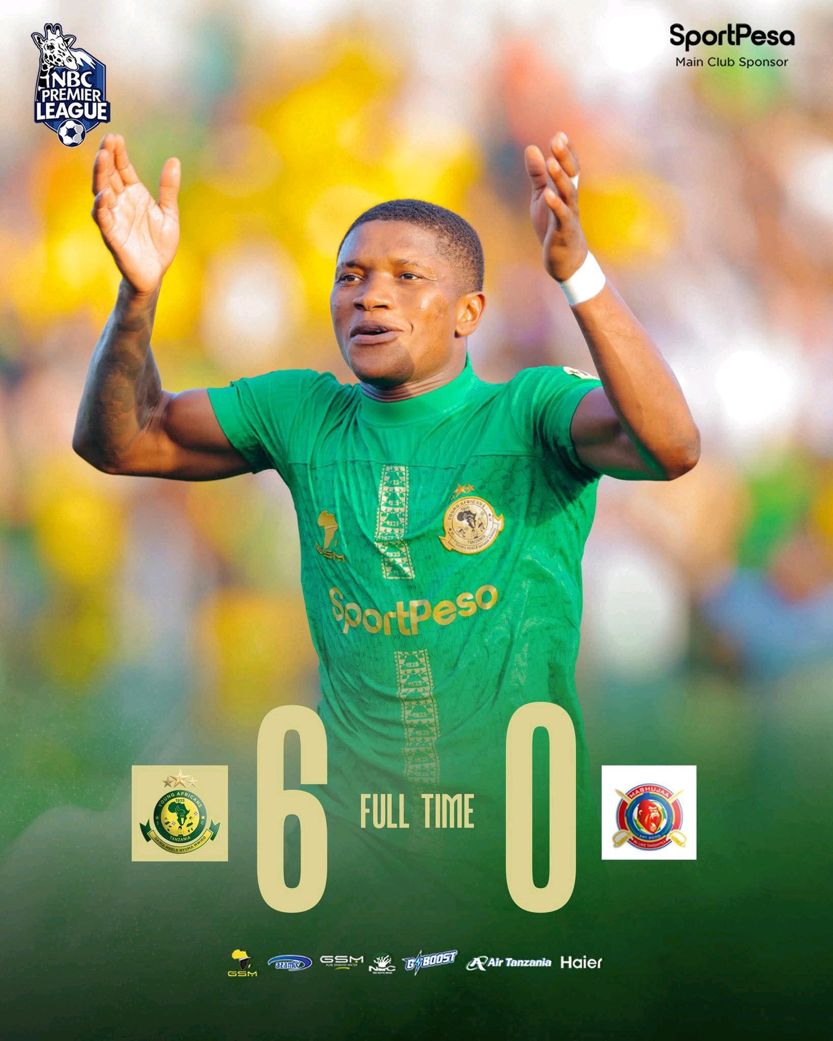 Klabu ya Young Africans SC (Yanga) imeandika historia nyingine katika Ligi Kuu ya NBC Tanzania Bara baada ya kuibuka na ushindi mnono wa mabao 6–0 dhidi ya Mashujaa FC ya Kigoma, katika mchezo uliochezwa kwa ushindani mkubwa lakini kumalizika kwa ubabe mkubwa wa mabingwa hao wa kihistoria. Mchezo huo ulipigwa Januari 19, 2026, na kuwafanya mashabiki wa Yanga kushuhudia burudani ya hali ya juu kutoka kwa kikosi chao.